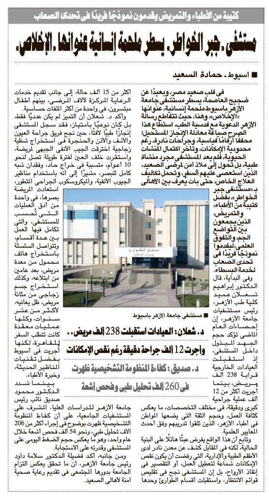إشادة صحفية واسعة بجهود مستشفى الأزهر بأسيوط في خدمة المرضى في جريدة الأهرام