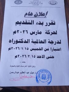 اعلان هام للأطباء الراغبين في التسجيل بدرجة الدكتوراه