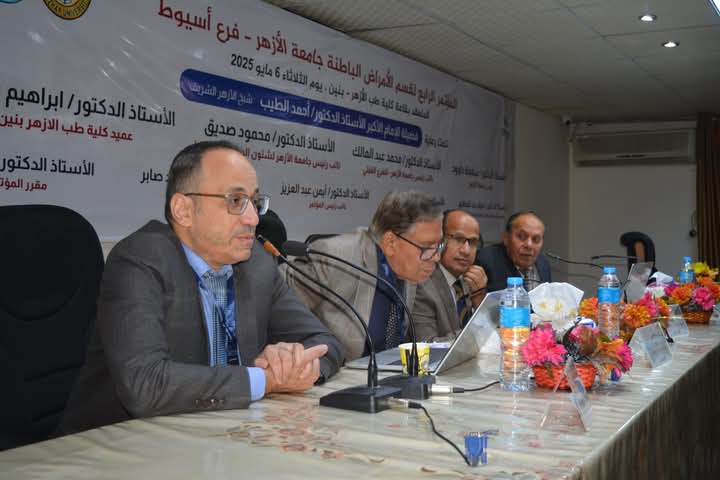 “نائب رئيس جامعة الأزهر للوجه القبلي وعميد الكلية يشهدان افتتاح المؤتمر الدولي الرابع لقسم الأمراض الباطنة بكلية طب جامعة الأزهر بأسيوط ورئيس الجامعة يلقي كلمة عبر الهاتف”