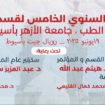 ينعقد المؤتمر الخامس لقسم الأمراض الصدرية يوم الخميس الموافق ١٩ يونيو ٢٠٢٥ بمدينة أسيوط ويتناول المؤتمر الجديد والحديث في الأمراض الصدرية والالتهاب الرؤي ويحضر المؤتمر العديد من أساتذة الأمراض الصدرية على مستوى الجامعات المصرية والأطباء من وزارة الصحة ومستشفيات الشرطة والقوات المسلحة