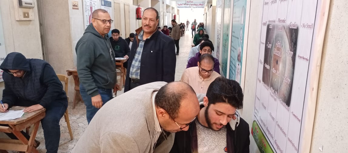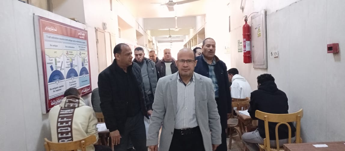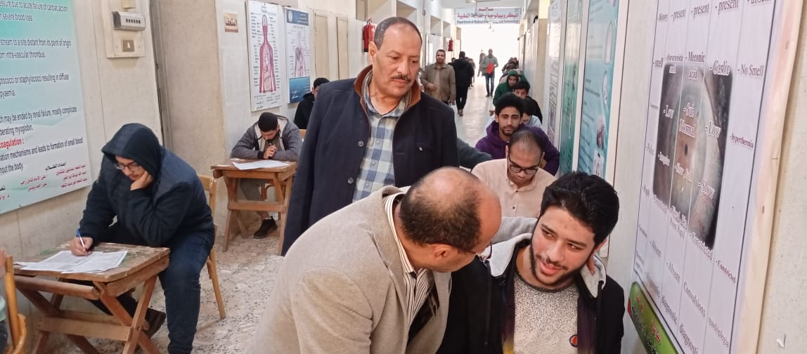 متابعة معالي الأستاذ الدكتور إبراهيم شعلان عميد الكلية وسيادة الاستاذ الدكتور محمد منير ريان وكيل الكلية لشؤون التعليم والطلاب لاعمال امتحانات الفرقة الثانية للعام الجامعي ٢٠٢٤ / ٢٠٢٥