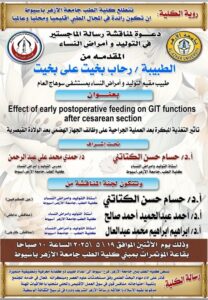 دعوة لمناقشة رسالة الماجستير بقسم التوليد وامراض النساء