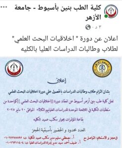 هام.. لباحثي الدراسات العليا بكلية طب الأزهر بأسيوط
