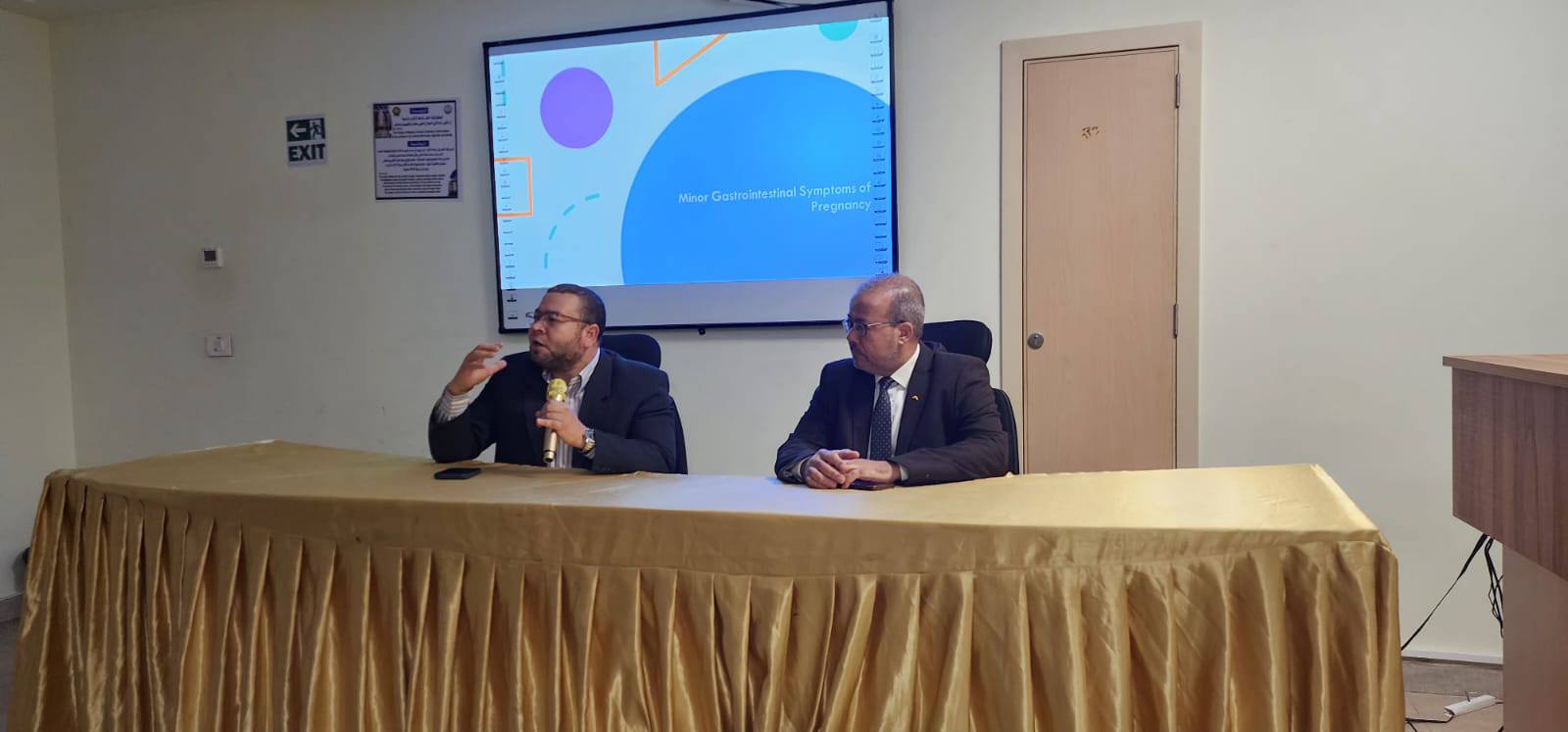 وفى المحاضرة الثانية تناول الدكتور محمد يونس مدرس أمراض الجهاز الهضمي والكبد مختلف الأمراض التى قد تصيب الجهاز الهضمي والكبد بسبب مباشر من الحمل مثل الفشل الكبدى الدهنى ومتلازمة HELLP , والتى تحدث مع بعض الحالات الشديدة لانسمام الحمل (تسمم الحمل ) ، واخيرا تحدث عن مرض الركود الصفراوى الحملى ، cholestasis ،