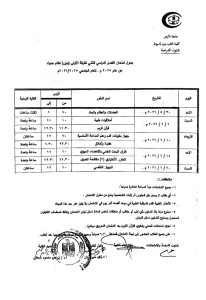 جدول الفرقه الاولى للفصل الدراسي الثاني للعام الجامعي ٢٠٢٥ / ٢٠٢٦