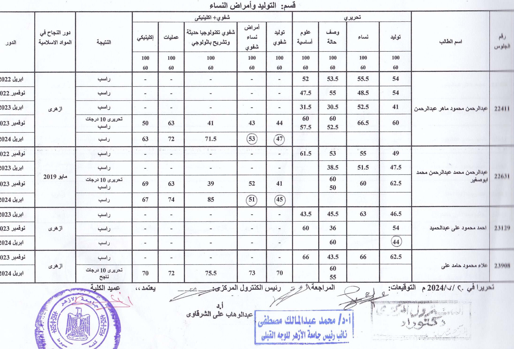 وكلاء الكلية لشئون التعليم والطلاب السابقون