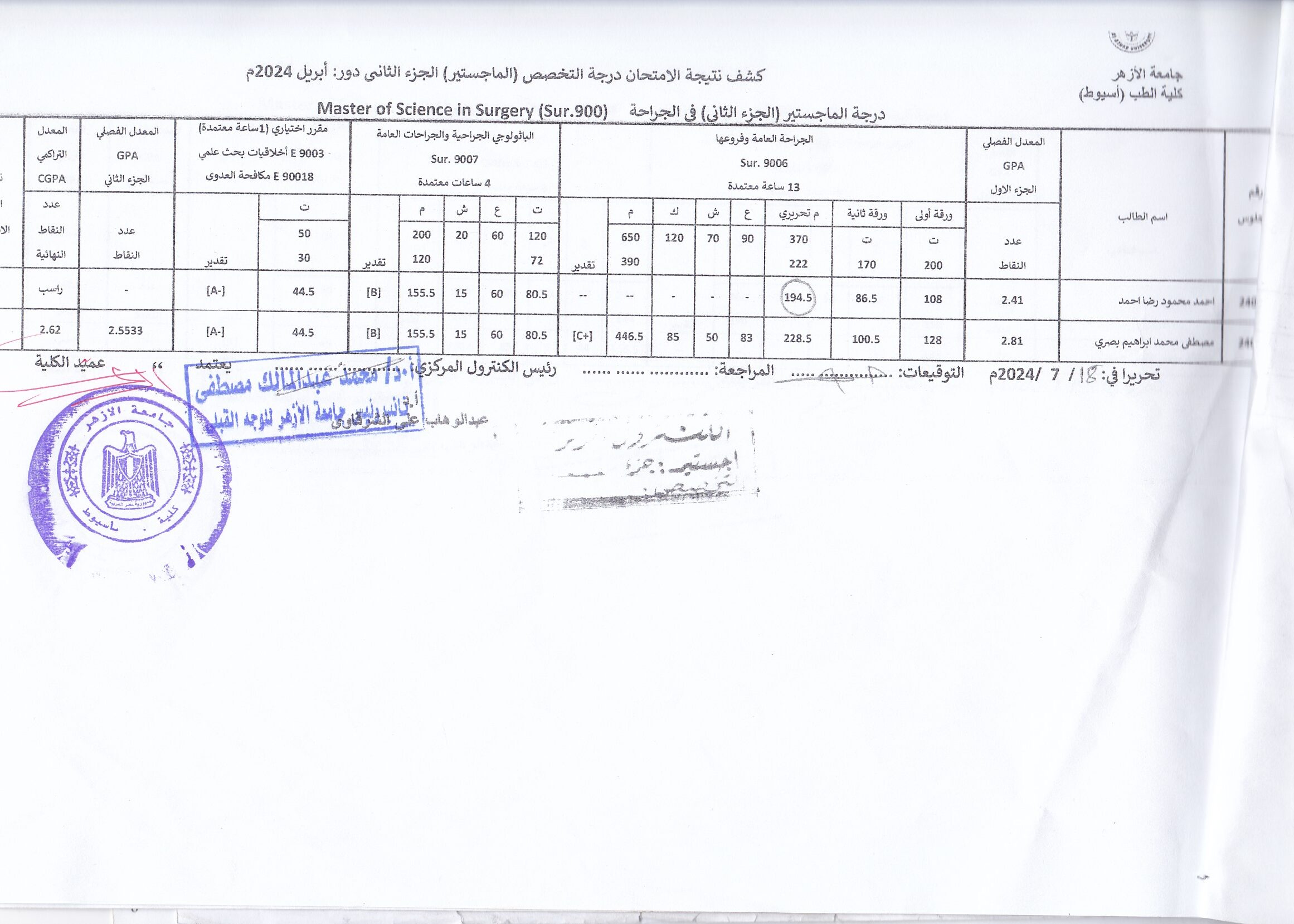 نتائج امتحانات الدراسات العليا
