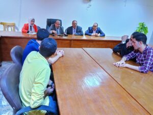 برئاسة الاستاذ الدكتور إبراهيم شعلان عميد الكلية والاستاذ الدكتور محمد منير ريان وكيل الكليه لشؤون التعليم والطلاب والدكتور علي الفولي مدير الجودة بالكلية انعقد اليوم المجلس الطلابي بحضور ممثلين من جميع الفرق الدراسية حيث استمع معالي الأستاذ الدكتور عميد الكلية والاستاذ الدكتور وكيل الكليه للمشكلات التي يتعرض لها الطلاب في داخل الكلية أثناء العملية الدراسية وفي خارج الكلية في المدينة الجامعية للطلبة المغتربين من خارج مدينة أسيوط