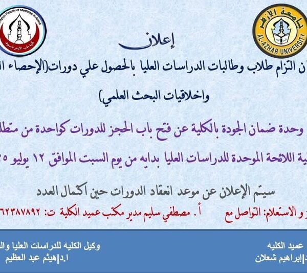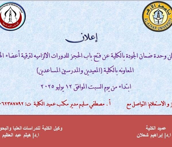 دورات لترقيه للساده معاوني أعضاء هيئة التدريسMakramshafeiيوليو 13, 2025تعلن وحدة ضمان الجودة بالكلية بالتعاون مع وحدة التطبيقات التكنولوجية بفرع الجامعه باسيوط ... اقرأ أكثر