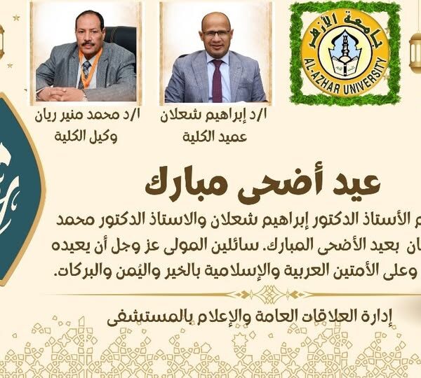 تهنئة بمناسبة عيد الاضحى المباركMakramshafeiيونيو 10, 2025يتقدم الاستاذ الدكتور إبراهيم شعلان عميد الكلية ورئيس مجلس إدارة المستشفى وااستاذ الدكتور ... اقرأ أكثر