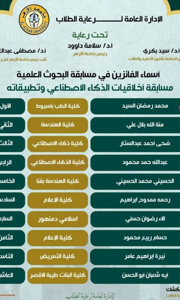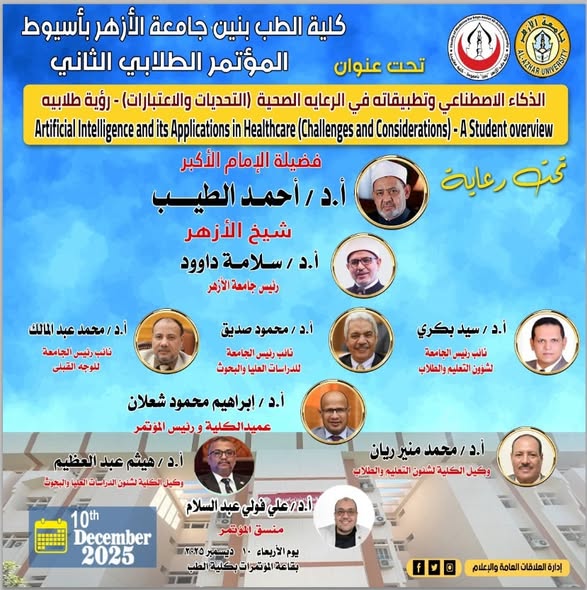 لمؤتمر الطلابي الثاني بعنوان “الذكاء الاصطناعي وتطبيقاته في الرعايه الصحيهMakramshafeiنوفمبر 19, 2025كلية طب الأزهر بنين باسيوط تعقد ا (التحديات والاعتبارات) – رؤية طلابيه وذلك ... اقرأ أكثر
