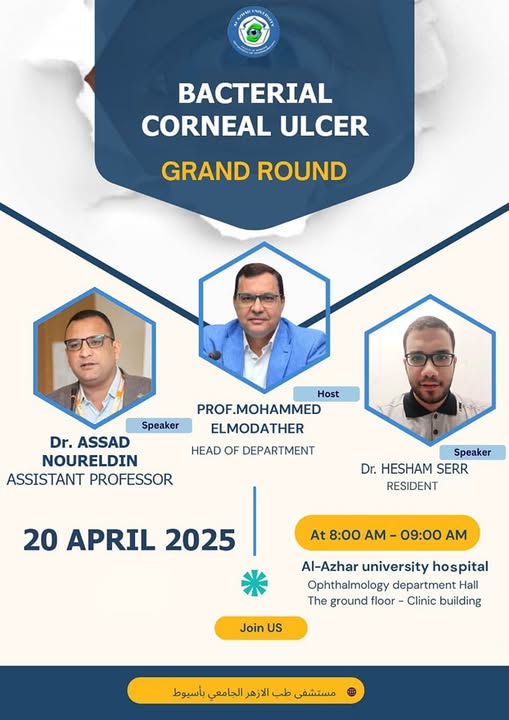يوم علمي بقسم طب وجراحة العيون بعنوان: “قرح القرنية البكتيرية “Makramshafeiأبريل 19, 2025يوم علمي بقسم طب وجراحة العيون بعنوان: “قرح القرنية البكتيرية ” تحت رعاية ... اقرأ أكثر